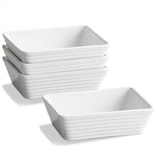 Lovely little ramekins. Charming aesthetic that’s at home in a country kitchen or even a modern on. Good for serving dips, sauces, and garnishes. Excellent for charcuterie and cheese boards holding olives, jams, etc. Reasonable size for creme brûlée, but a bit too small for French onion soup. Well made and pretty light weight which might sacrifice durability a bit. Oven, microwave, and dishwasher safe, so easy to clean. At $25 for 4, or a bit more than $6 per, tit’s reasonably value for money. Overall, very happy! 5/5 stars.