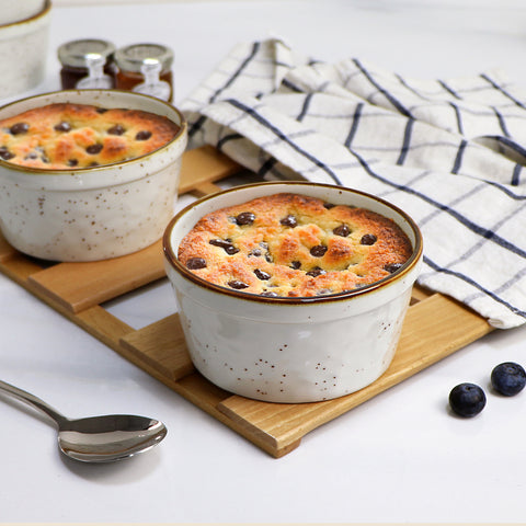 I've ordered a few different sets of ramekins and liked them, but these 6 oz. ramekins from ONEMORE are fantastic! The bottom is stamped with a label that mentioned they are dishwasher, oven, and microwave safe. The lids also work wonderful to hold in heat after baking your goods. The speckled gold/yellow/cream color is rustic, but classic. And the little handles on the sides! They're functional, perfectly sized, and adorable! I'd highly recommend them for the price, don't hesitate to get them!