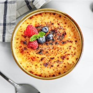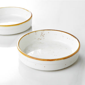 Perfect size to make Crème brûlée: The wider and shallow design allow you to create a lot of surface area to brulee, so you can put as much sugar as you want. The creamy white glaze, toasty chestnut brown edge and the brown speckle flack are great color mix for...