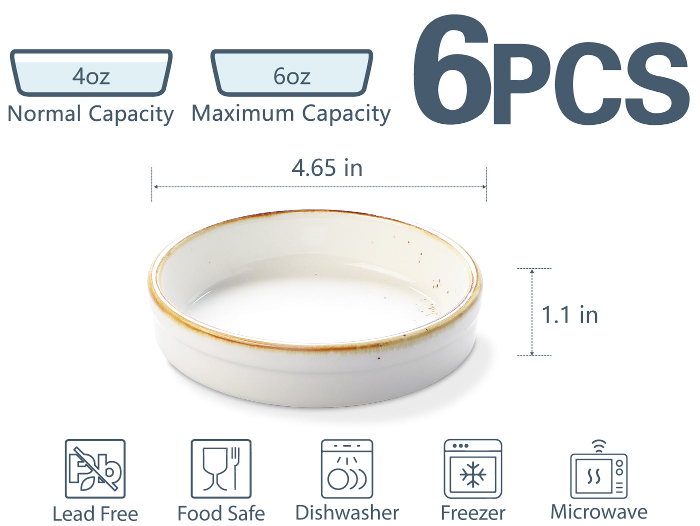 Ramekin Creme Brulee, Set of 6 - 4.5 inch, Perfect for Tea & Dessert-Unique Home Decor.,Creamy White