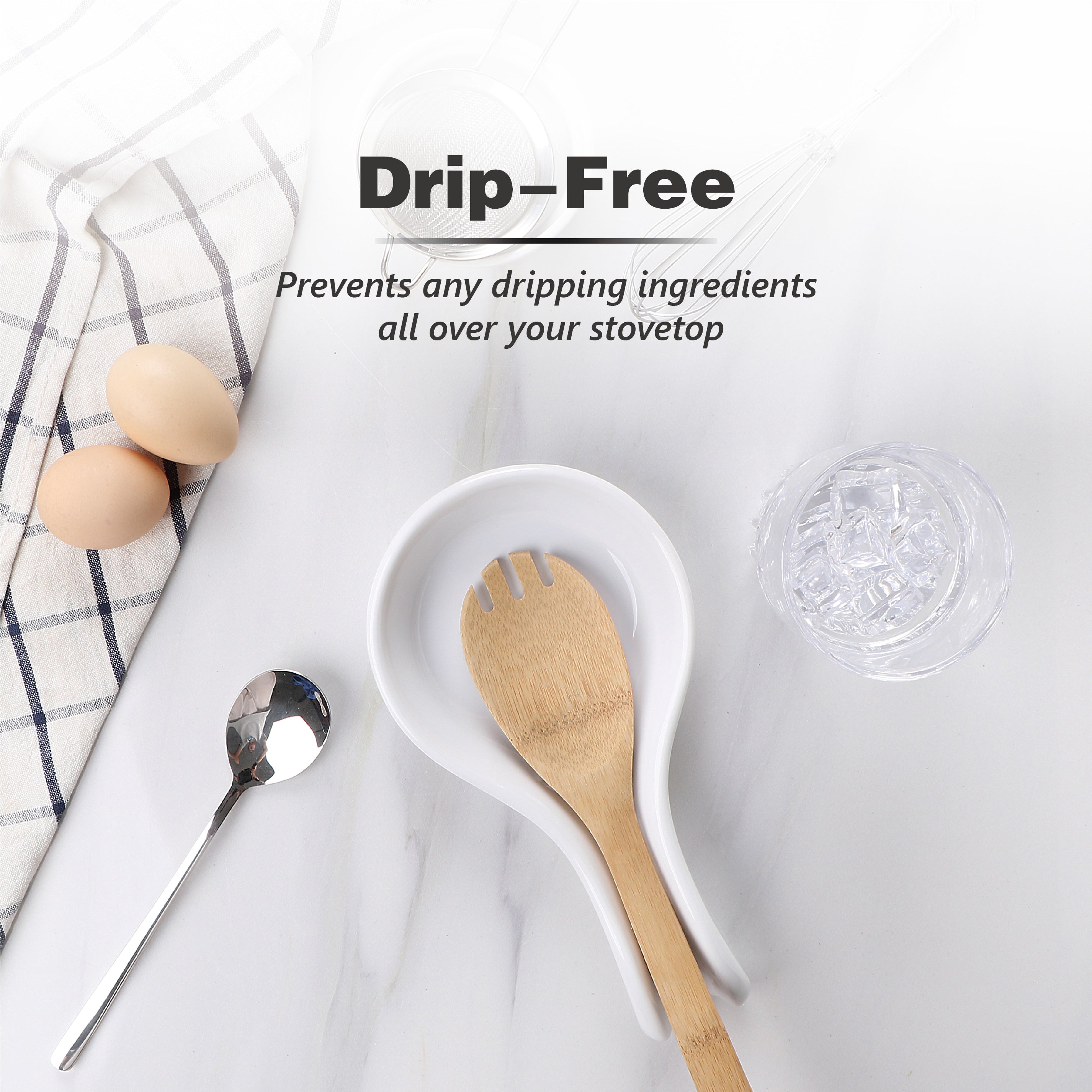 CLASSIC AND PRACTICAL: The 8”x5”x1.27”H spoon rest is a must-have cooking tool in your kitchen. The wide base can accommodate almost all cookware, and the raised side at the end of the spoon rest prevents cooking liquid from dripping into your on the countertop.