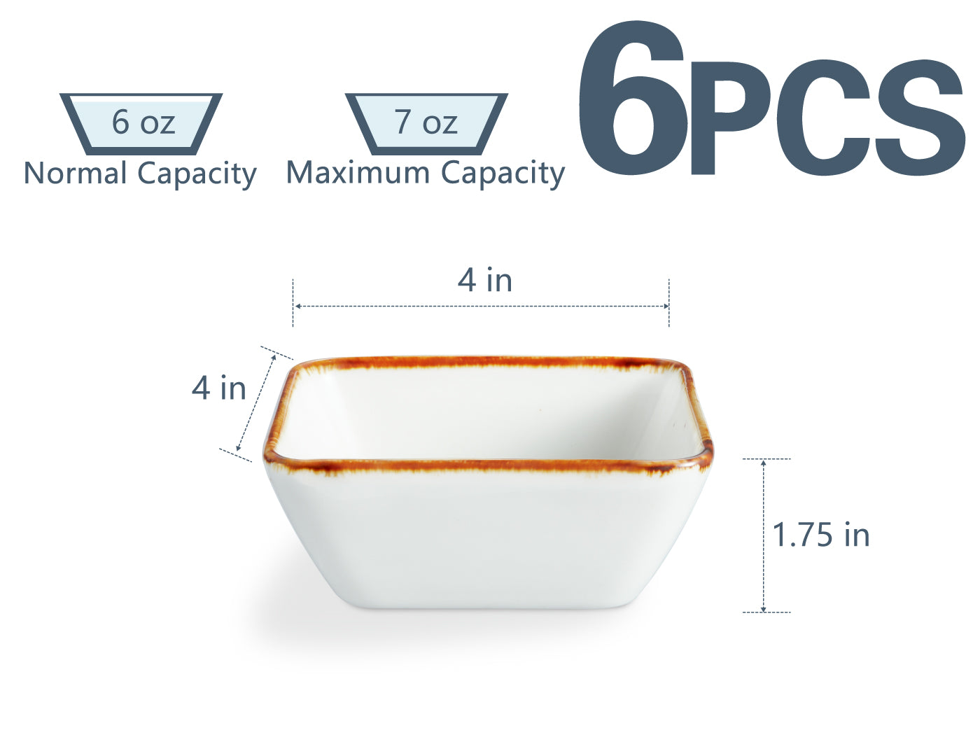 ONEMORE 7 oz. Set of 6 Square Ceramic Dip Bowls