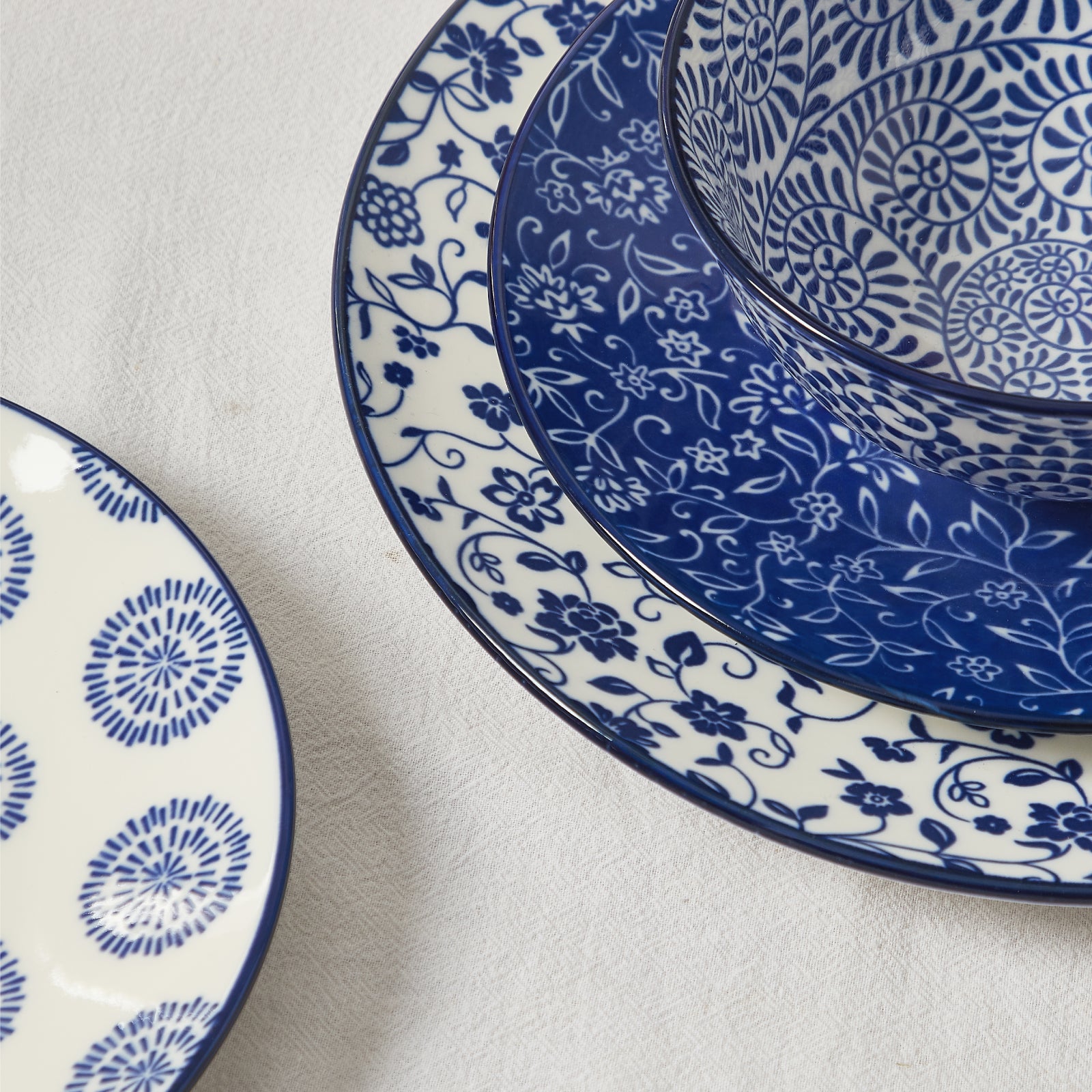 ONEMore Ceramic Salad Plate Set (6 pieces), 10 inch Plate - Ceramic Pastry Plate for Microwave Oven - Japanese Art Style, Scratch Resistant, Durable - Retro Blue