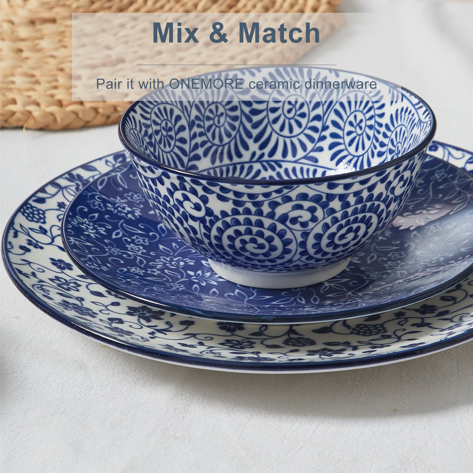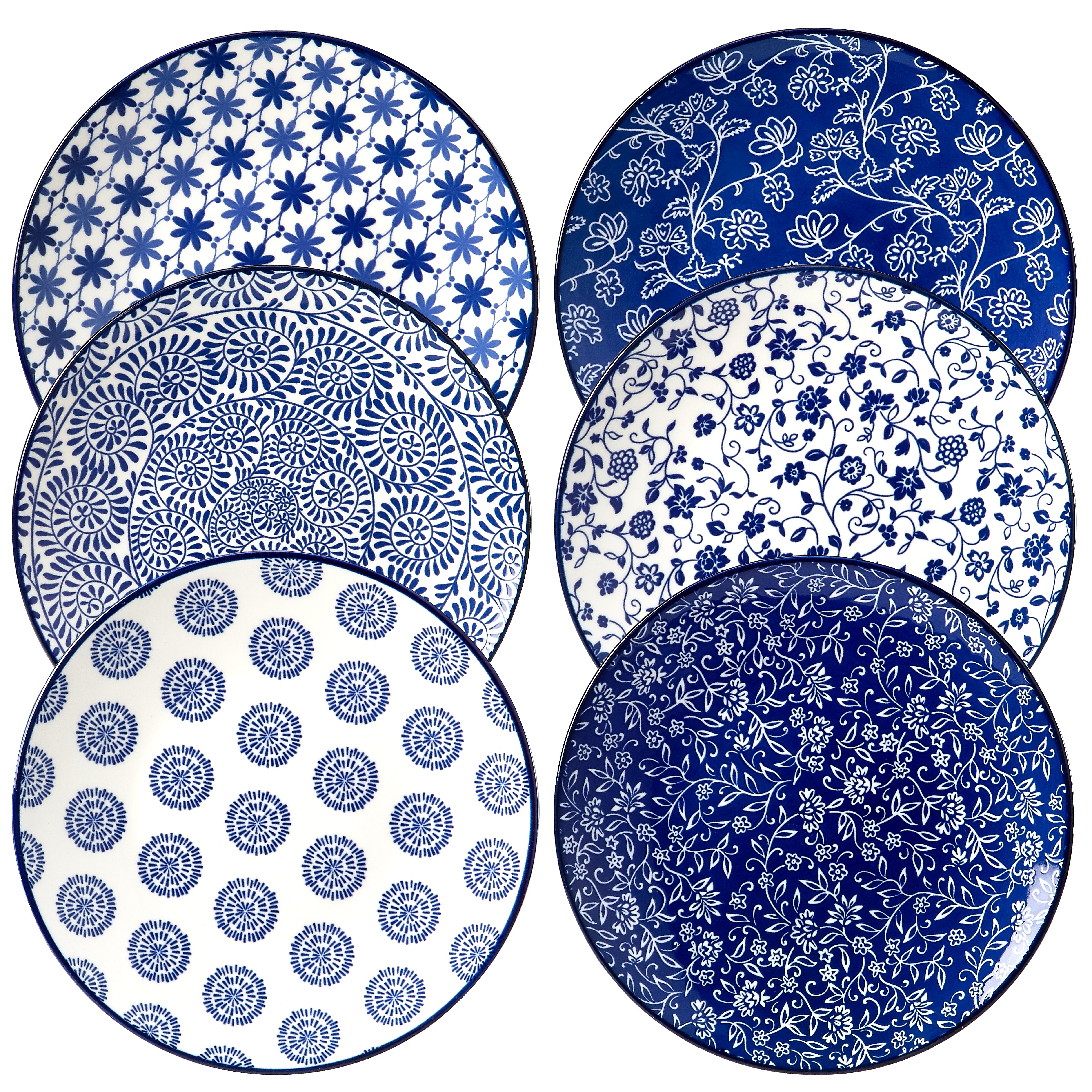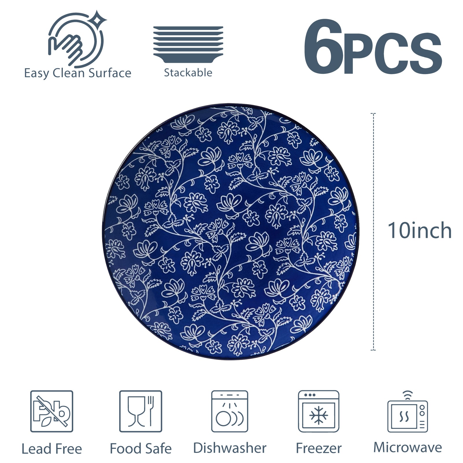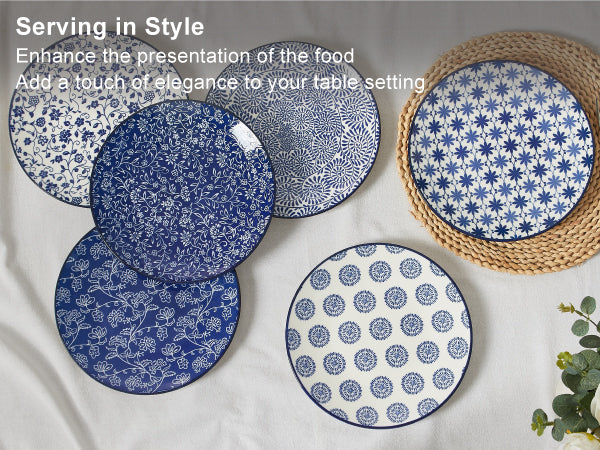 Vintage Blue Plate 6-piece Set, 10 inch Porcelain Salad Plate: These are perfect for celebrating events, dining together, and adding a touch of joy to your dining experienceCeramic plates for daily use: The plate set is versatile and has enough space to hold salads, pasta, pancakes, steaks, bread, and risotto,...