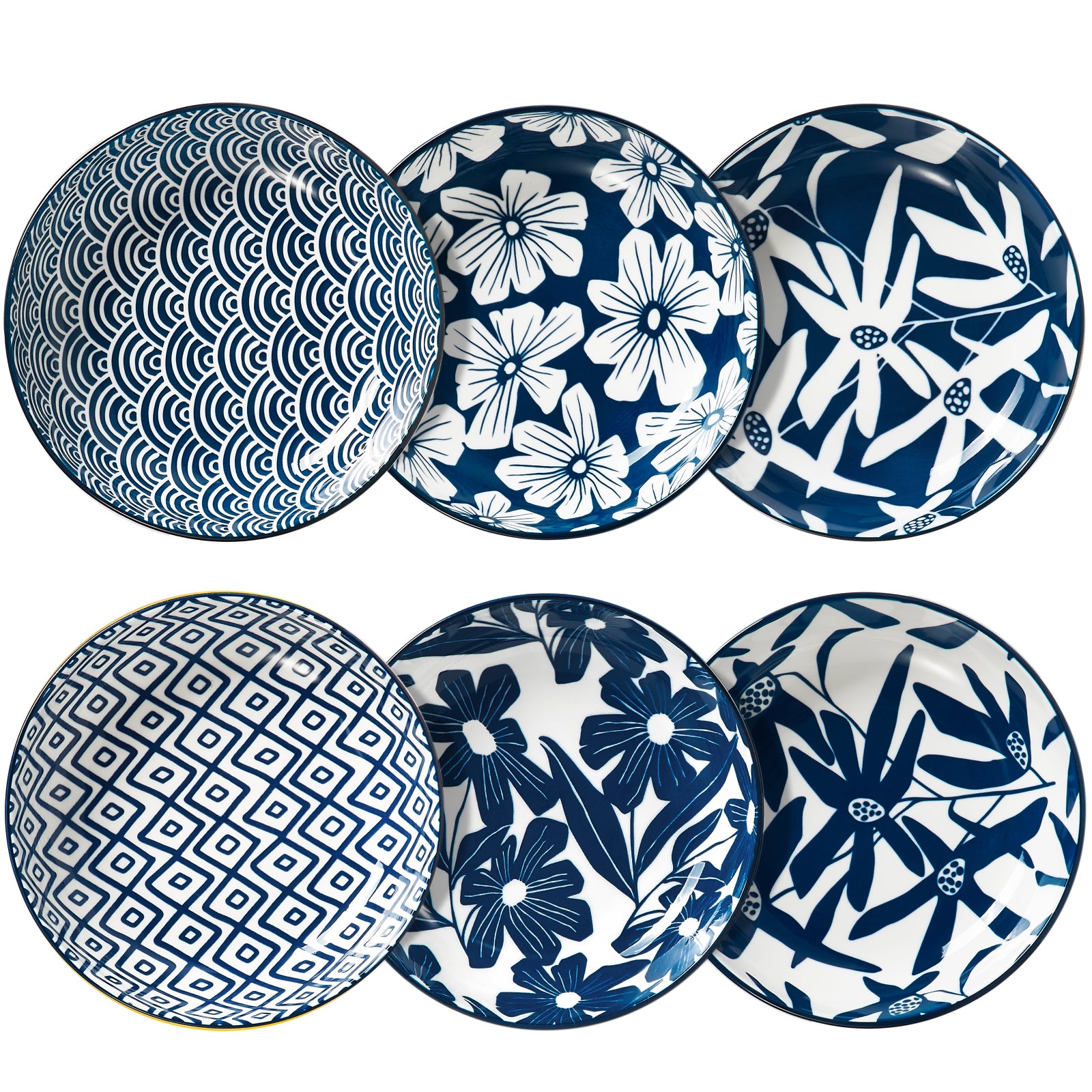 6-piece pasta bowl set - ceramic wide bowl suitable for ovens/microwaves/dishwashers, perfect for dinner - stackable, scratch resistant - Japanese style, scratch resistant - retro blue.Durable and elegant salad bowl: Made of high-quality ceramics, it is long-lasting. Deep dish design, capable of holding a large amount of ingredients and flexibly...