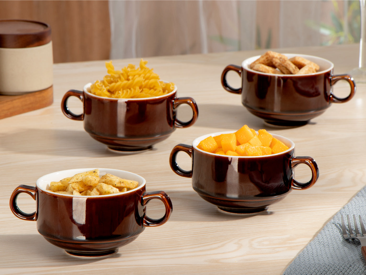 Enhance your culinary creativity - these baked dishes are carefully crafted, pay attention to details, and are a microcosm of versatility and quality. This set of four solid color double ear bowls with white glaze is a must-have for your kitchen, whether you're cooking classic baked goods, hearty clay pots,...