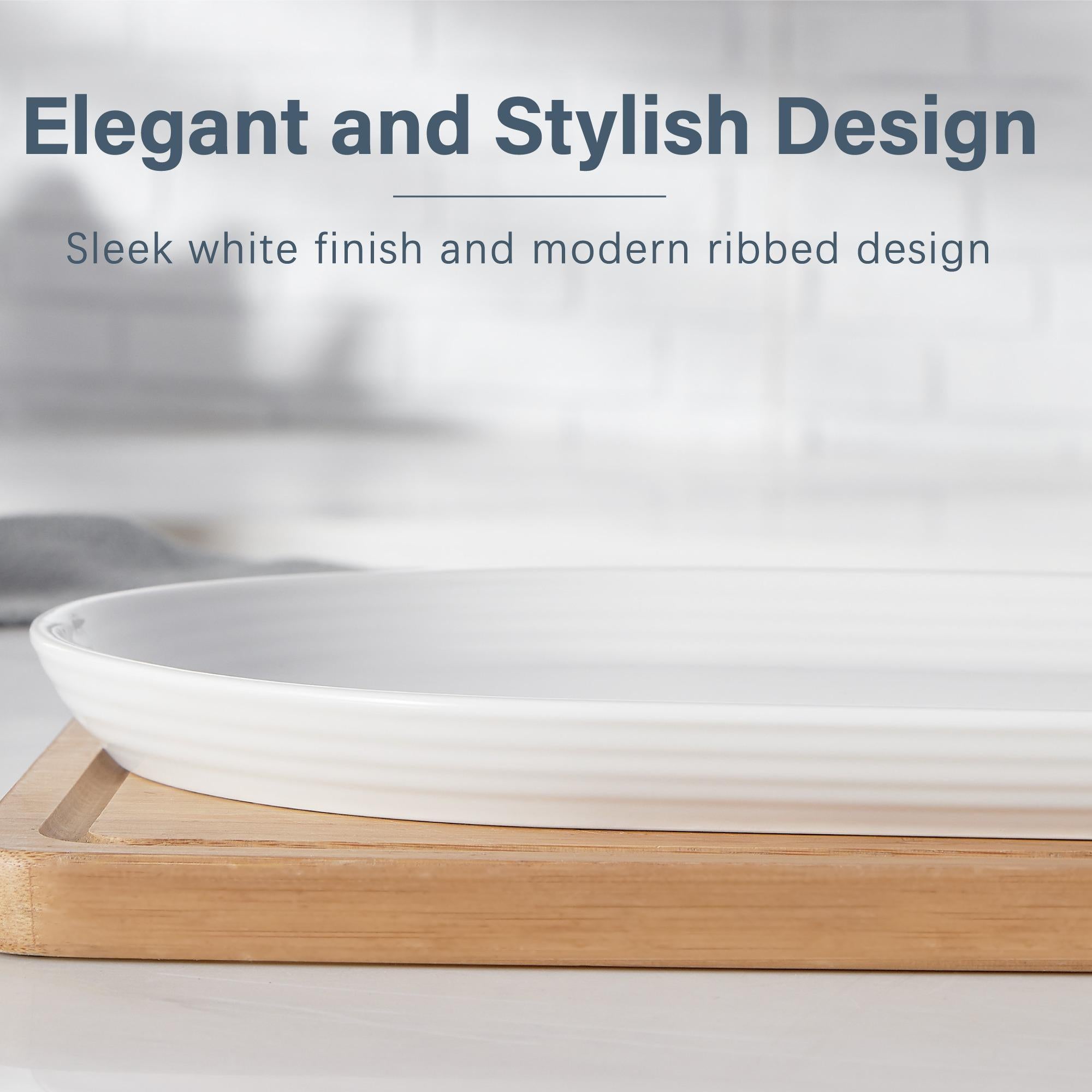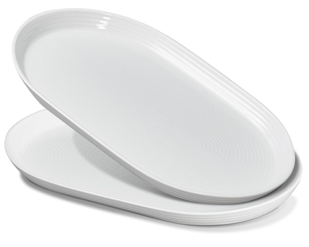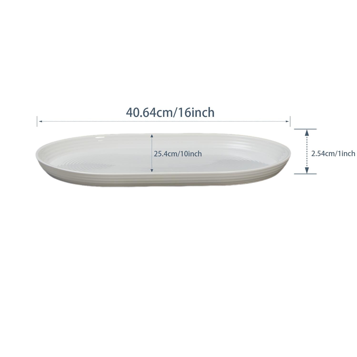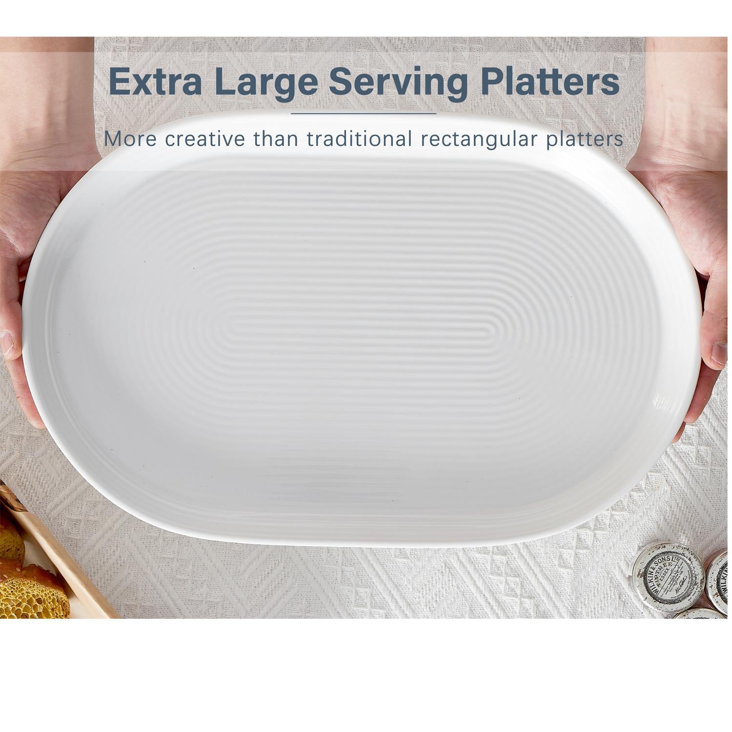 ONEMORE 16 inch ceramic plates for entertaining guests, 2-piece set large oval plates - dishwasher washable, oven safe for holding food, meat, fish, party trays - porcelain Thanksgiving turkey platter - white The oval design perfectly fits grilled meat, turkey, or whole fish. This large ceramic dining plate has a...