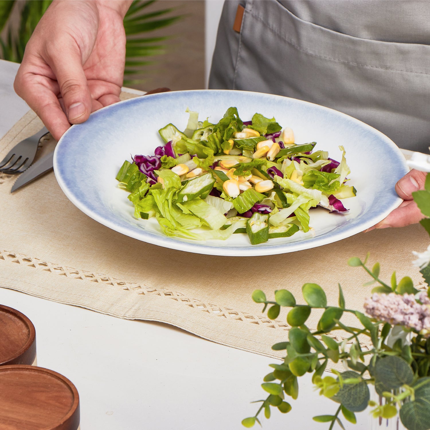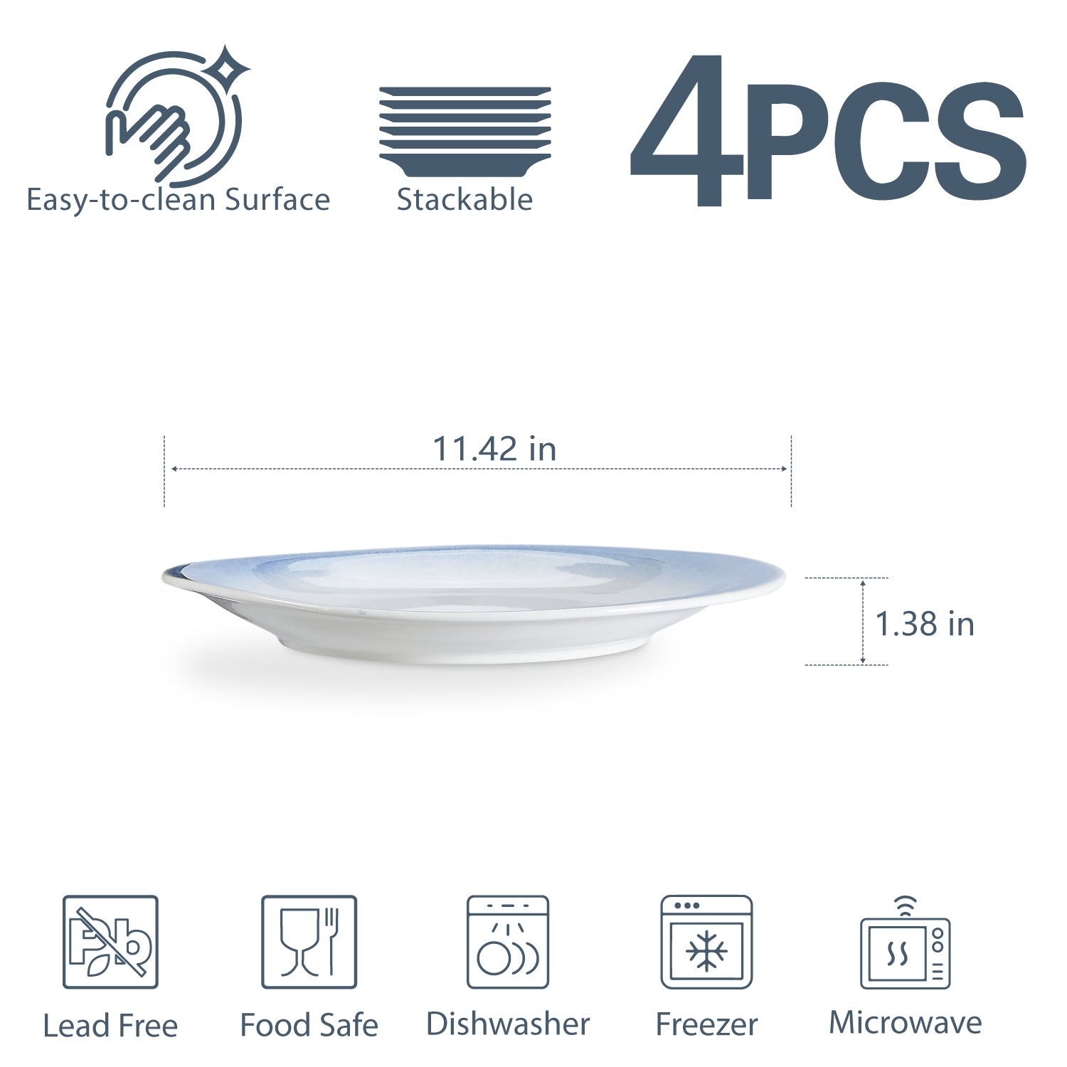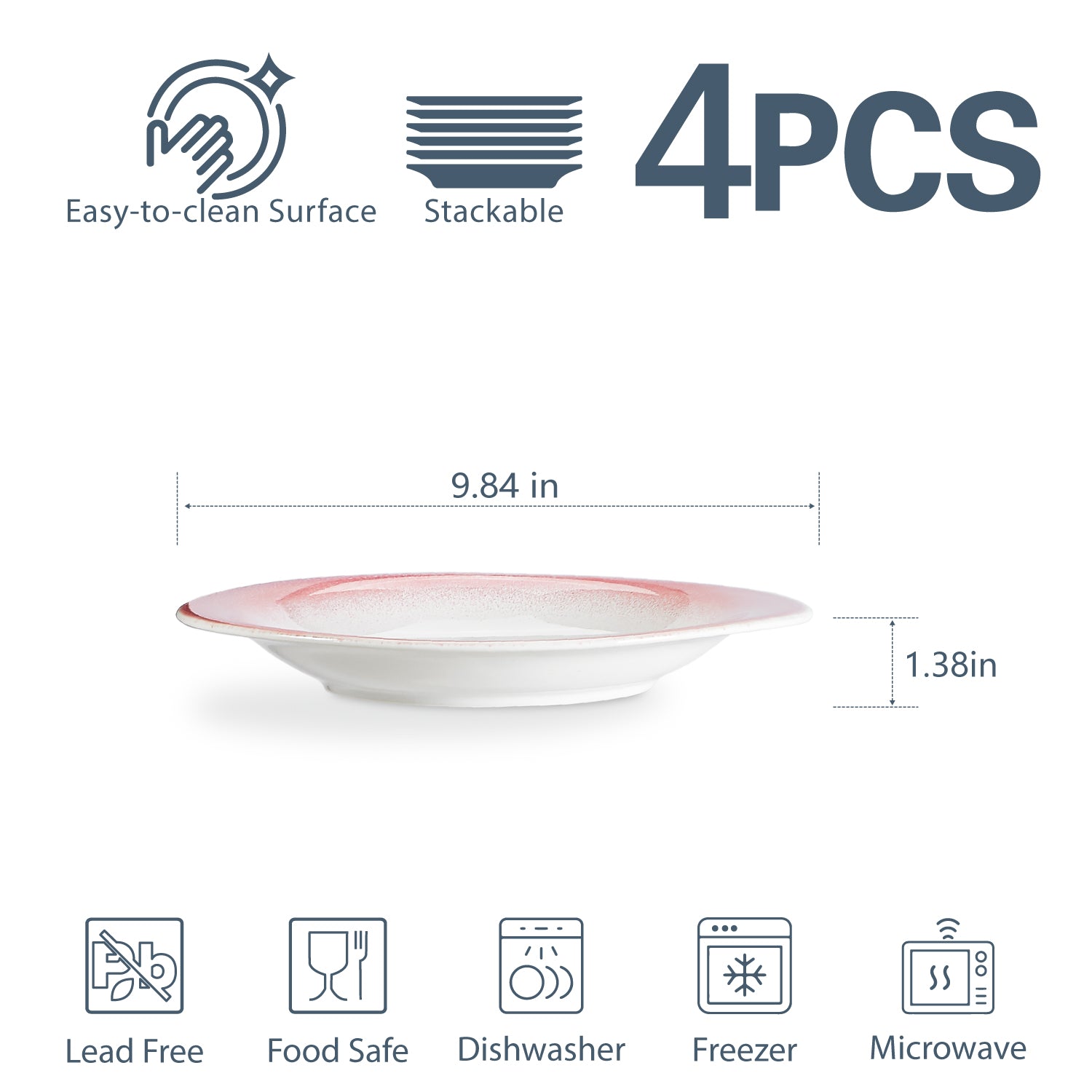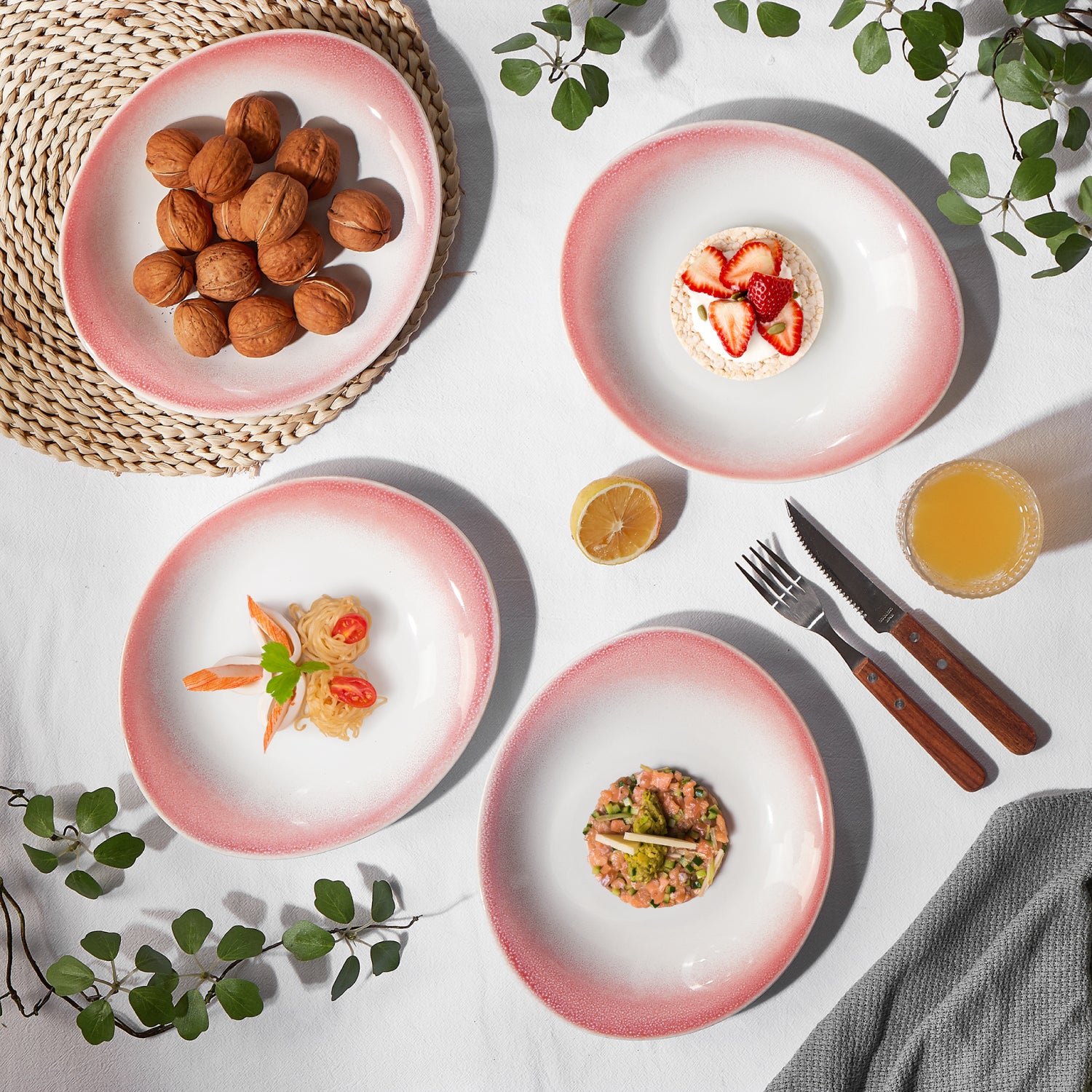 ONEMORE Ceramic Salad Plate Set (4 pieces),9.5-inch and 11 inch ingot reverse edge discs, available in two colors: blue and red