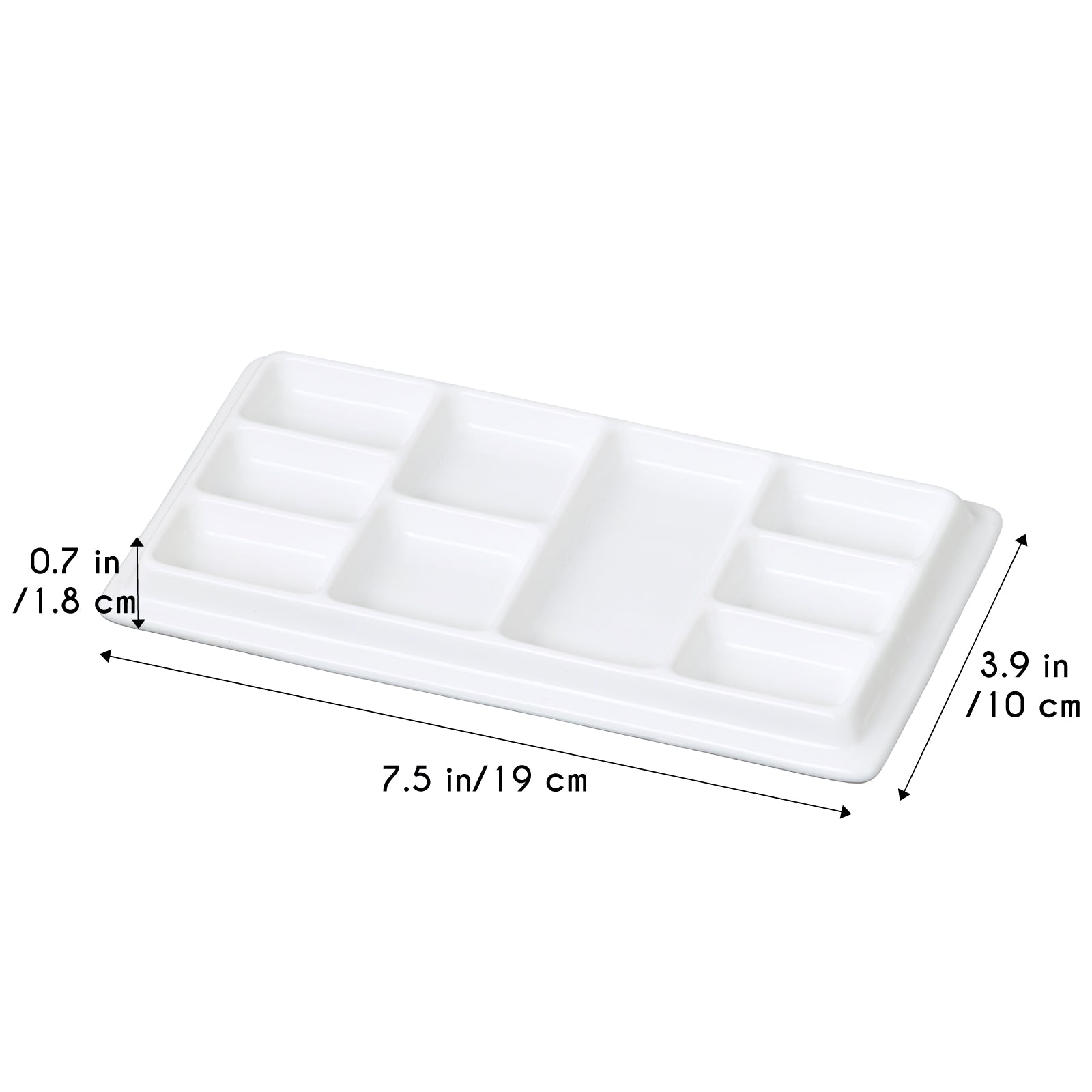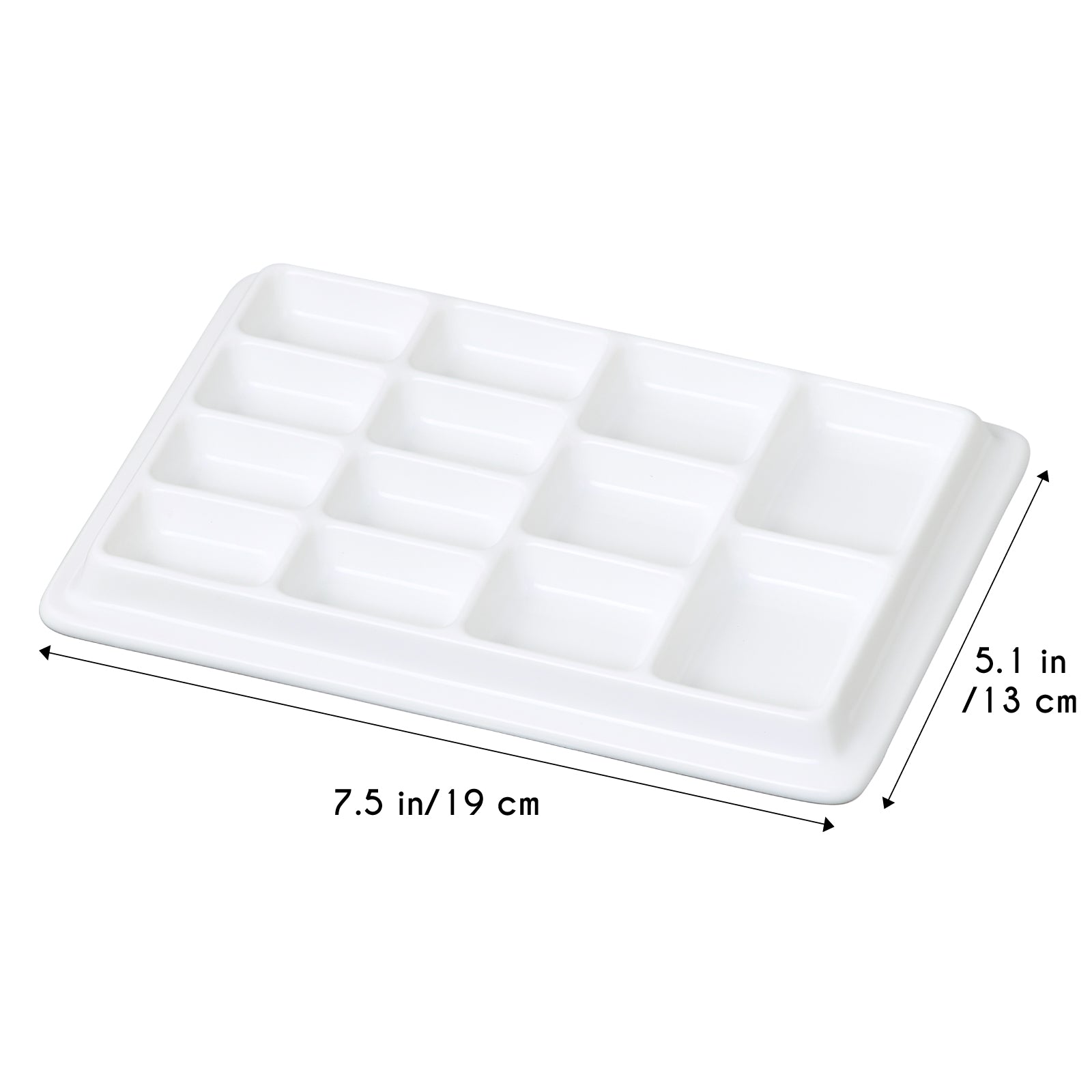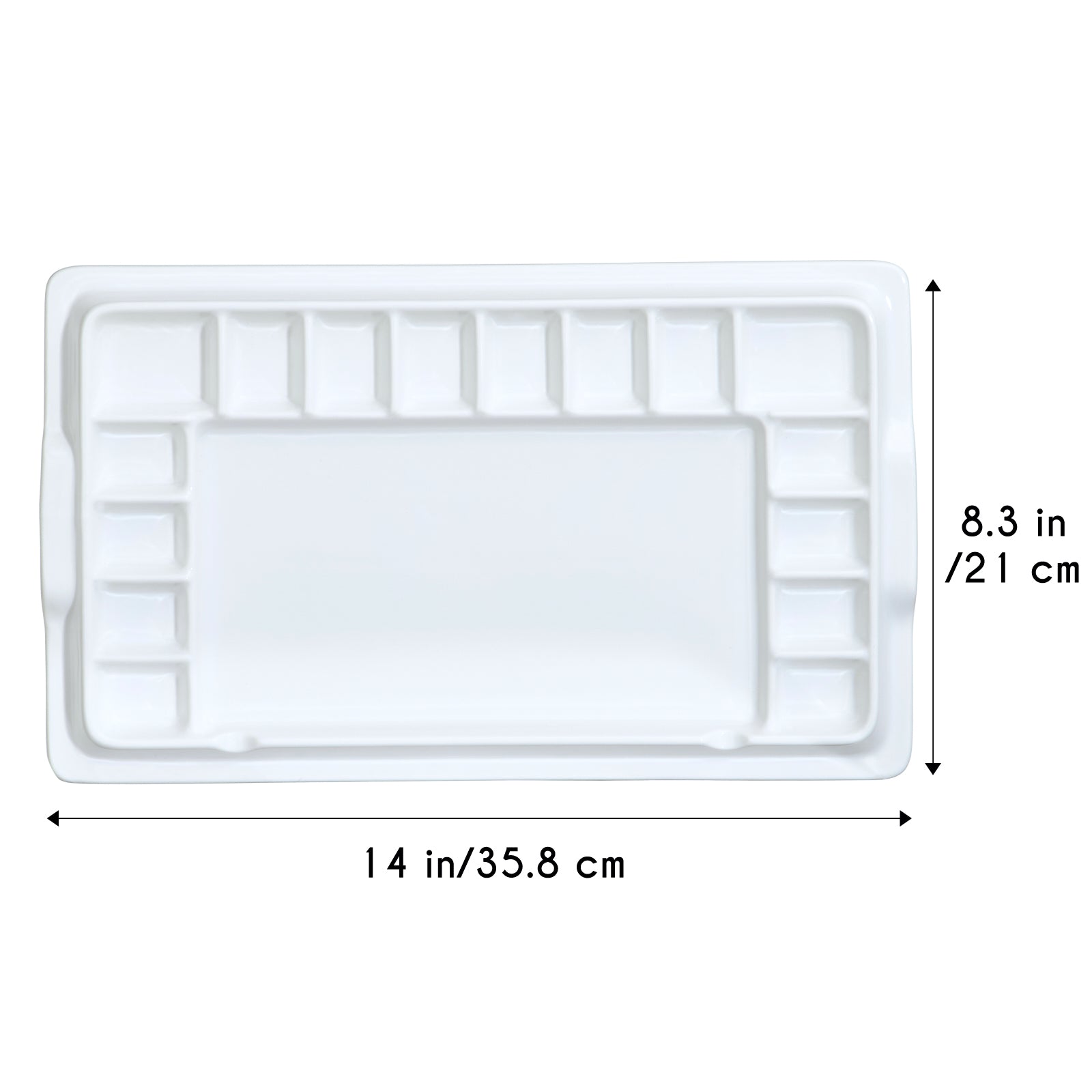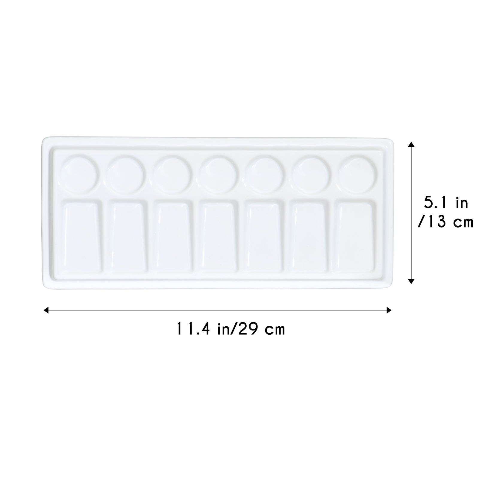 11.5-inch rectangular color palette with 14 compartments and plastic cover - ceramic color palette, white