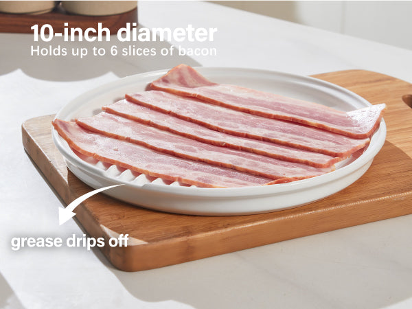 ๐Ÿญ๐Ÿญ ๐—œ๐—ป๐—ฐ๐—ต ๐—–๐—ฒ๐—ฟ๐—ฎ๐—บ๐—ถ๐—ฐ ๐—•๐—ฎ๐—ฐ๐—ผ๐—ป ๐—ง๐—ฟ๐—ฎ๐˜† ย Round Bacon Pot - This round white bacon pot can cook delicious crispy bacon in an oven or microwave. The raised ceramic bacon rack ensures even heating without the need to flip. It can be used as a bacon tray or bacon tray for convenient...